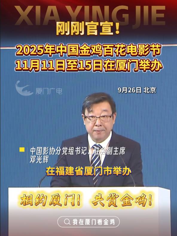 官宣:2025年中国金鸡百花电影节,11月11日至15日相约厦门!