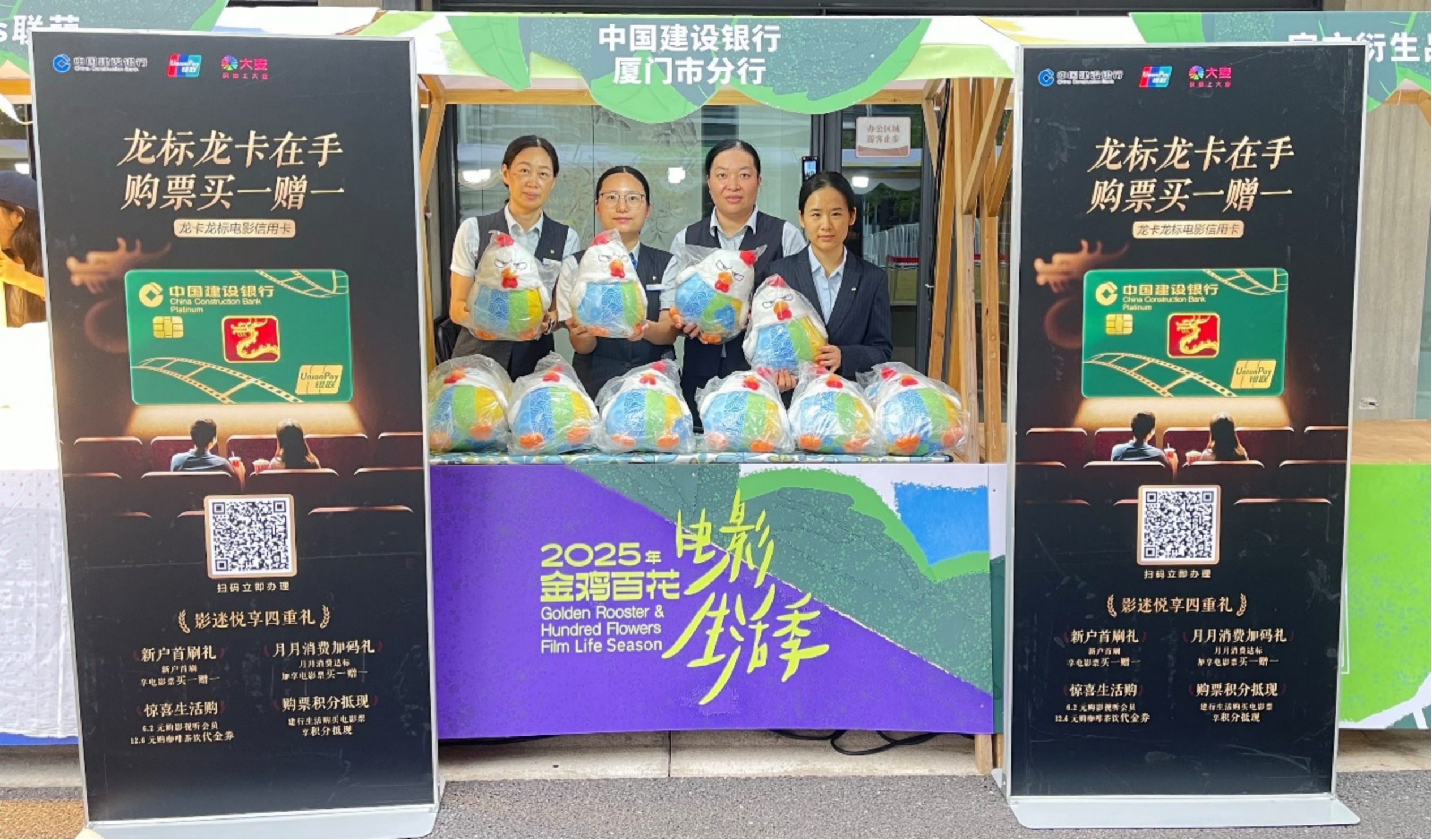 金鸡电影节期间,在金鸡海峡两岸暨港澳青年短片季活动现场,厦门建行设立了专属展区,展示其以金融力量推动两岸融合发展的服务举措,根据台胞台企多元发展需求,聚焦“五篇大文章”,结合区域发展战略,开展多维度金融服务。